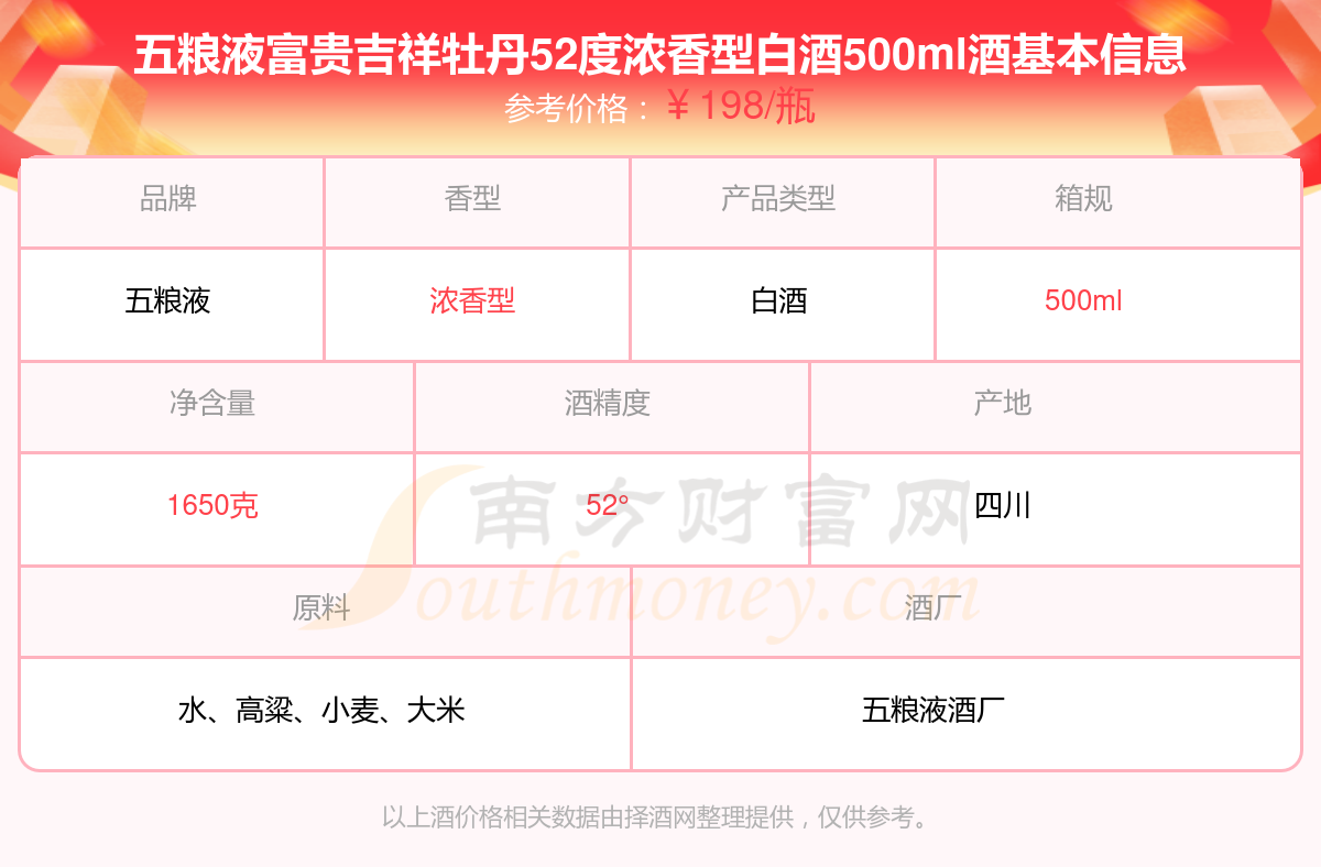 五糧液富貴吉祥牡丹52度濃香型白酒500ml基本信息