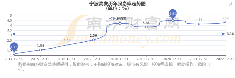 近年寧波高發(fā)年度股息率走勢(shì)如下圖: