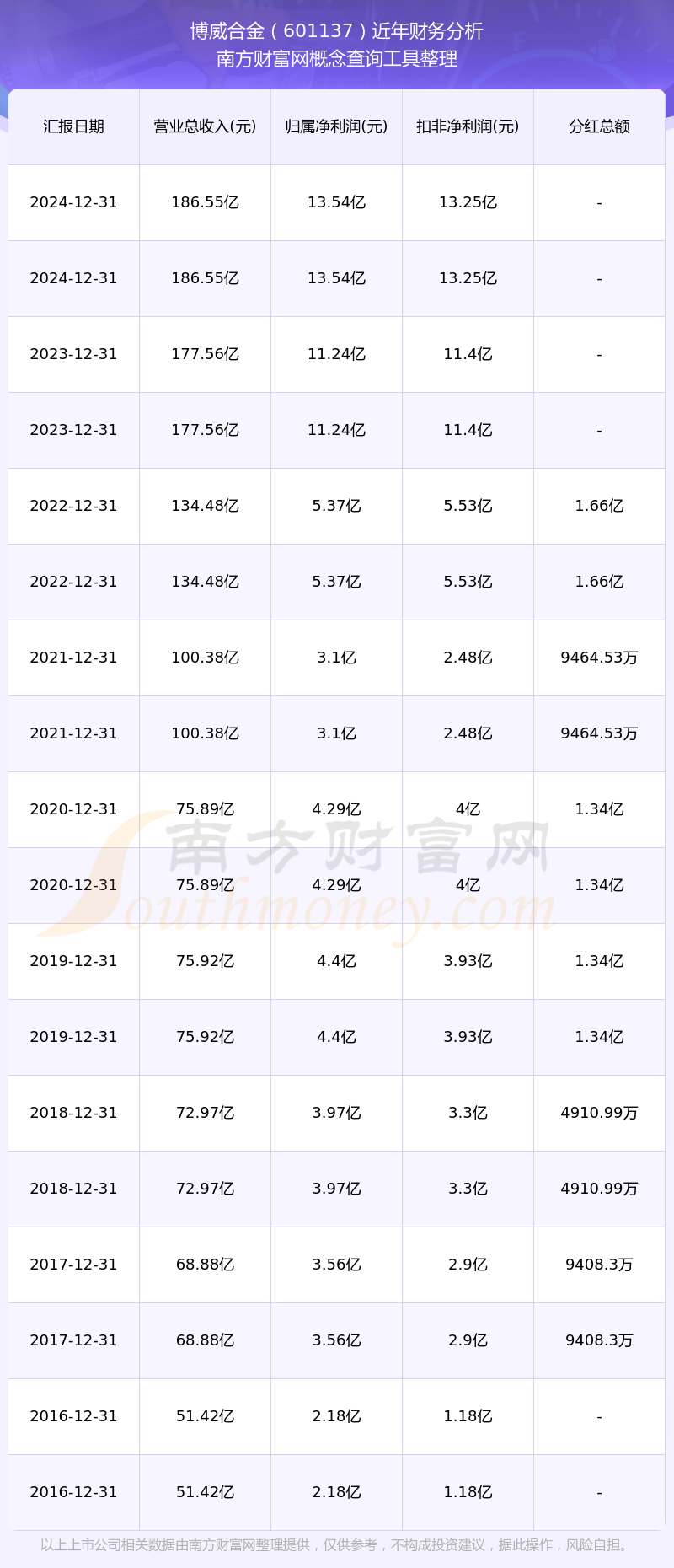 博威合金2024年總營收186.55億,同比增長5.06%;凈利潤13.54億,同比增長20.47%;銷售毛利率17.97%。