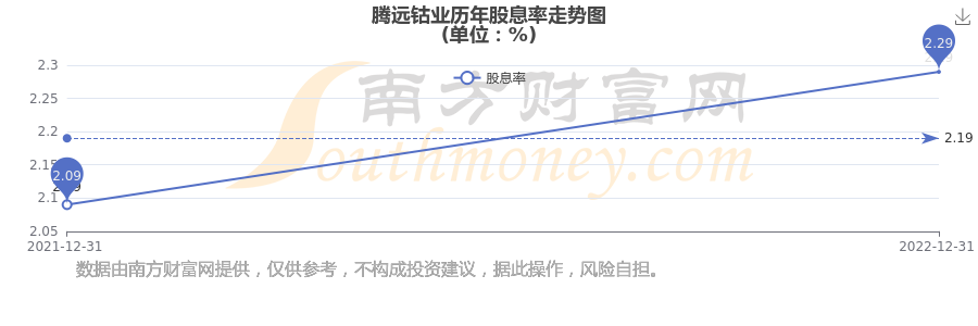 近年騰遠(yuǎn)鈷業(yè)年度股息率走勢如下圖: