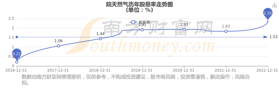 皖天然氣歷年股息率走勢(shì)如下圖: