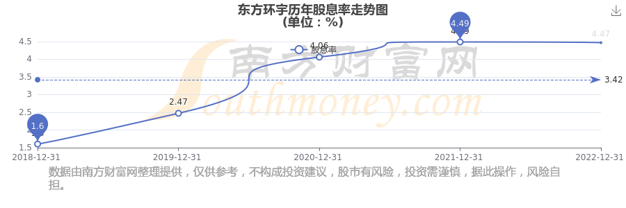 近年?yáng)|方環(huán)宇年度股息率走勢(shì)如下圖: