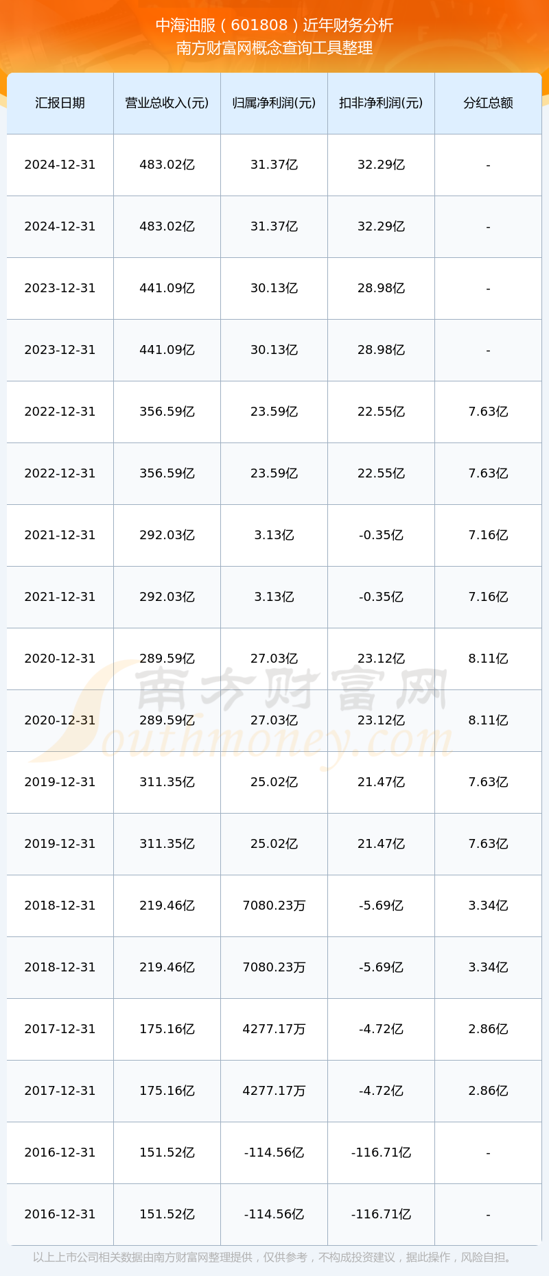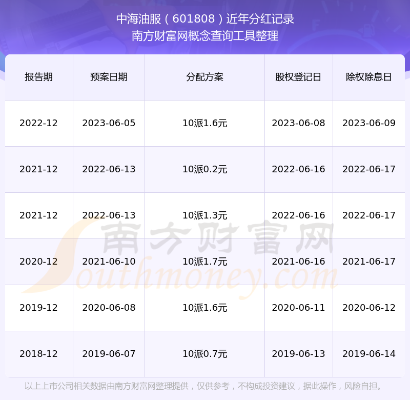 中海油服最新一次公布的分紅方案:10派1.6元。