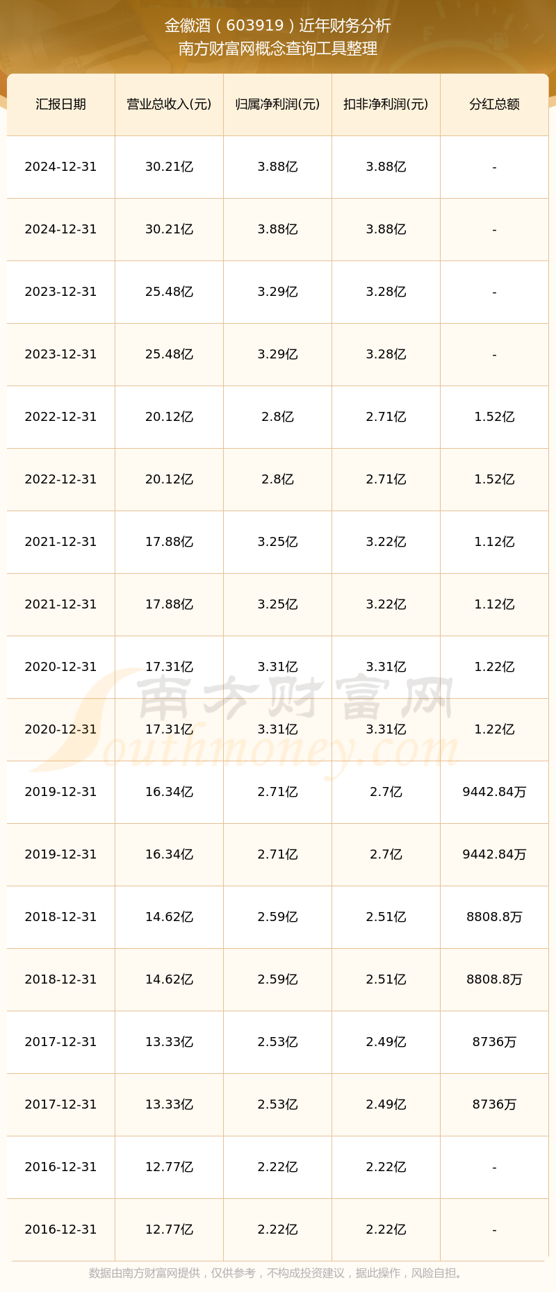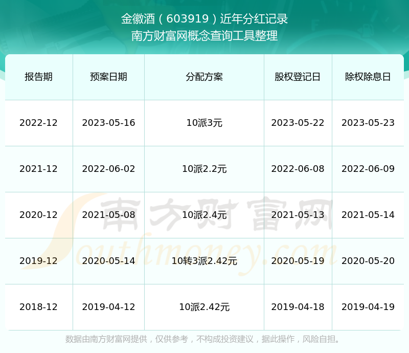 近年金徽酒分紅派息情況如下表所示: