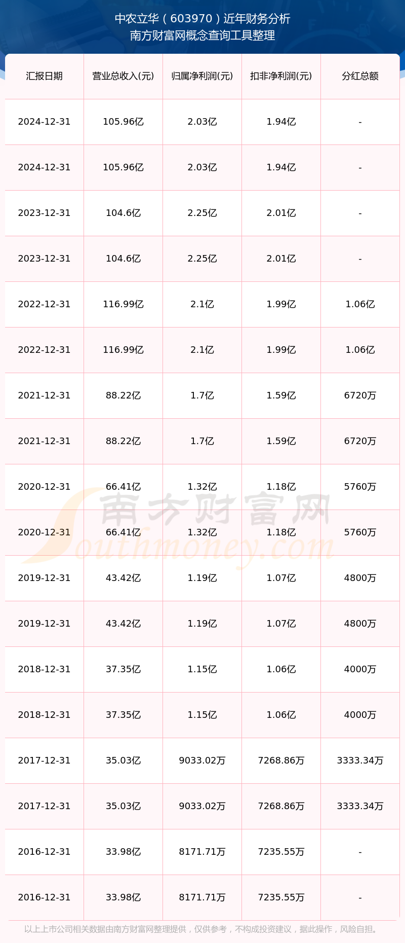 中農(nóng)立華公司2024年實現(xiàn)營收105.96億元,凈利潤2.03億元,毛利率7.06%。