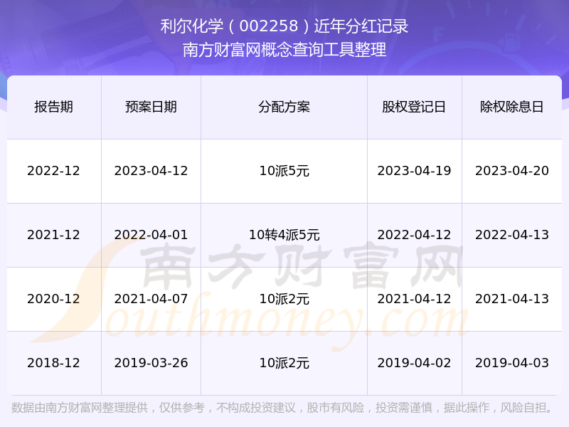 利爾化學(xué)最新一次公布的分紅方案:10派5元。