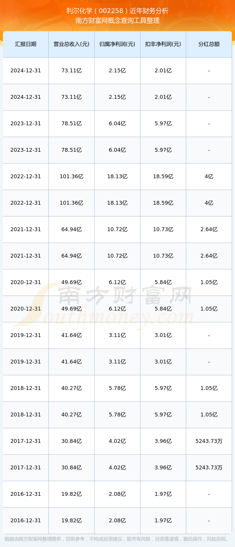 利爾化學(xué)歷年分紅派息情況如下表所示: