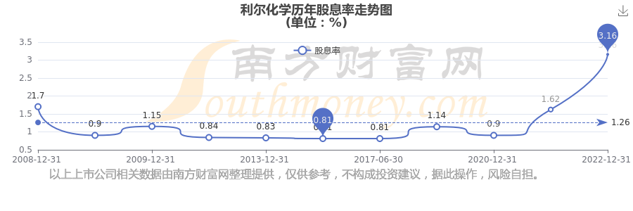 利爾化學(xué)歷年股息率走勢(shì)如下圖: