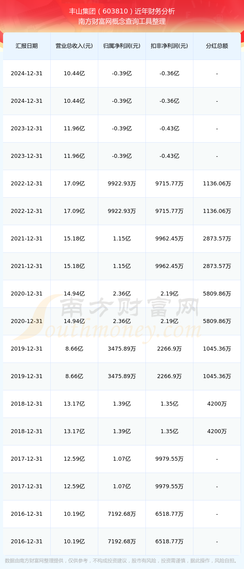 豐山集團最新一次公布的分紅方案:10派0.6999元。