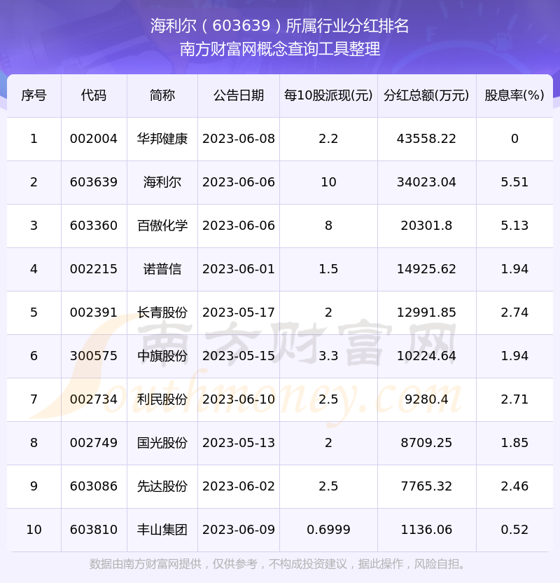 按照南方財(cái)富網(wǎng)趨勢選股系統(tǒng)統(tǒng)計(jì),海利爾所屬行業(yè)為農(nóng)藥行業(yè),農(nóng)藥行業(yè)分紅排名情況如下表:
