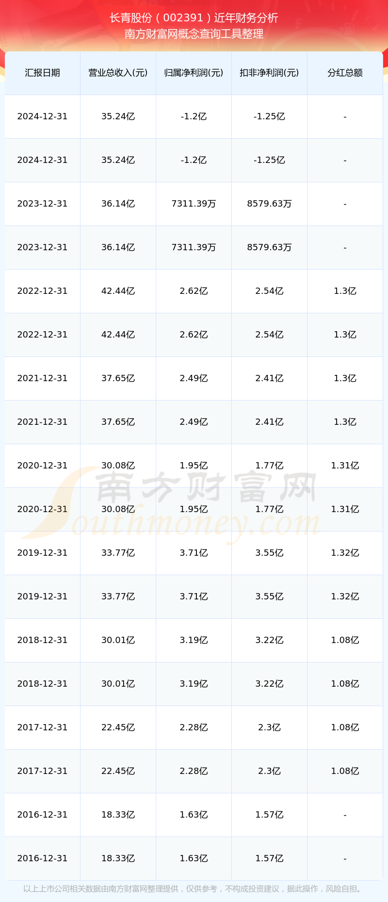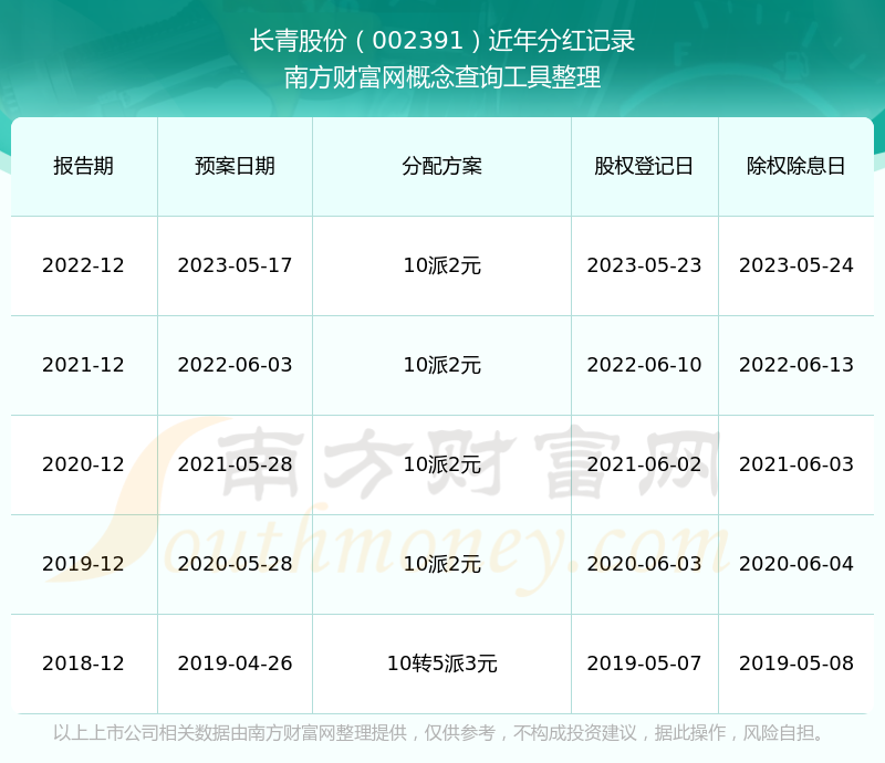 長青股份歷年分紅派息情況如下表所示: