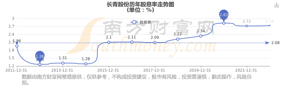 長青股份歷年股息率走勢如下圖: