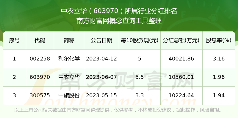 二、中農(nóng)立華603970行業(yè)分紅排名