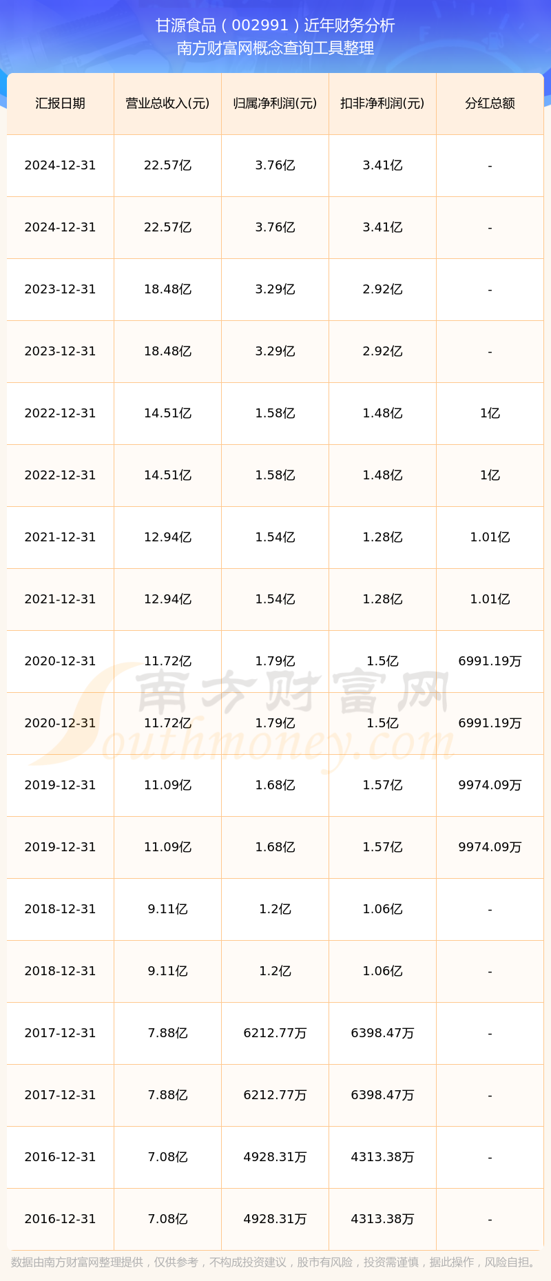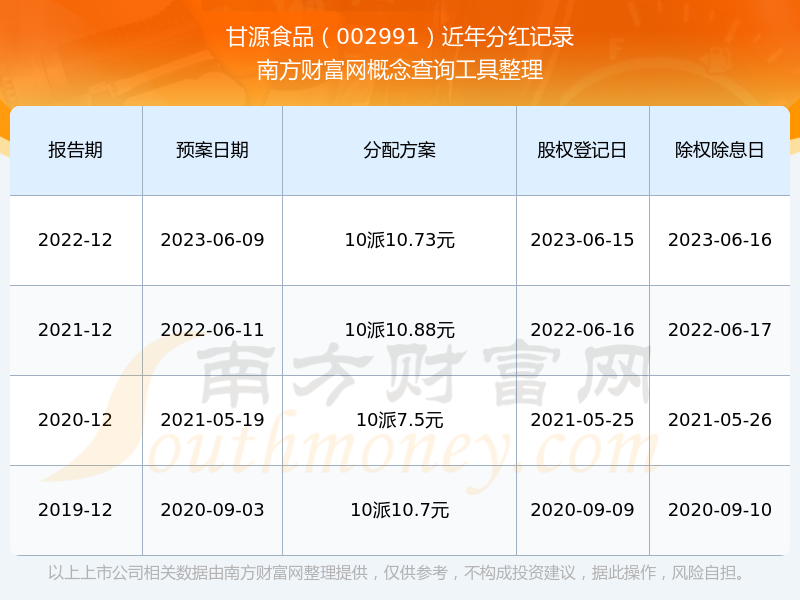 甘源食品歷年分紅派息情況如下表所示: