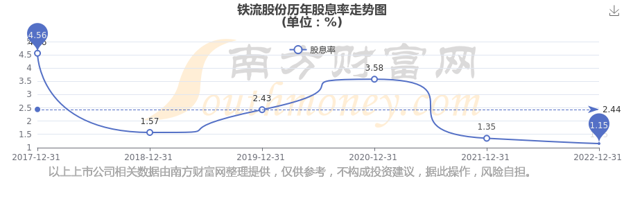 近年鐵流股份年度股息率走勢(shì)如下圖: