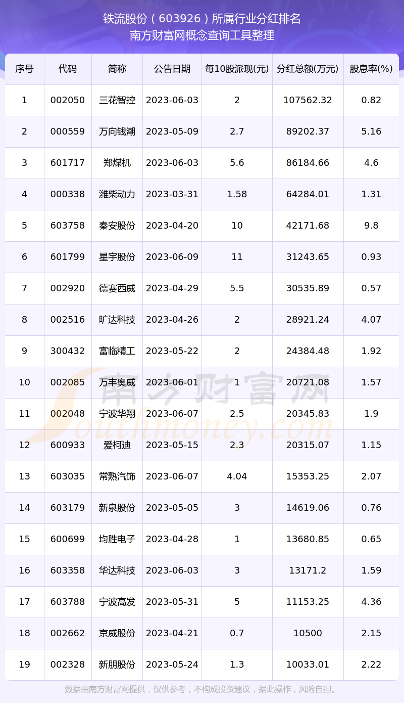 二、鐵流股份603926行業(yè)分紅排名