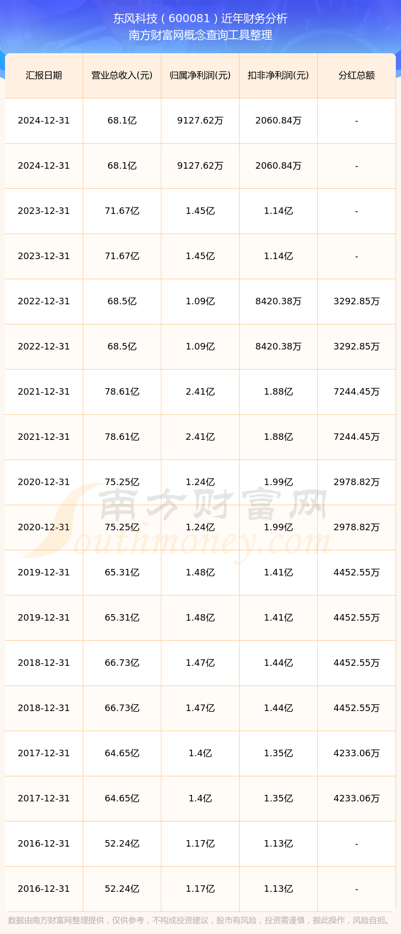 2024年?yáng)|風(fēng)科技總營(yíng)收68.1億,同比增長(zhǎng)-4.98%;凈利潤(rùn)9127.62萬(wàn),同比增長(zhǎng)-37.05%;銷(xiāo)售毛利率12.33%。