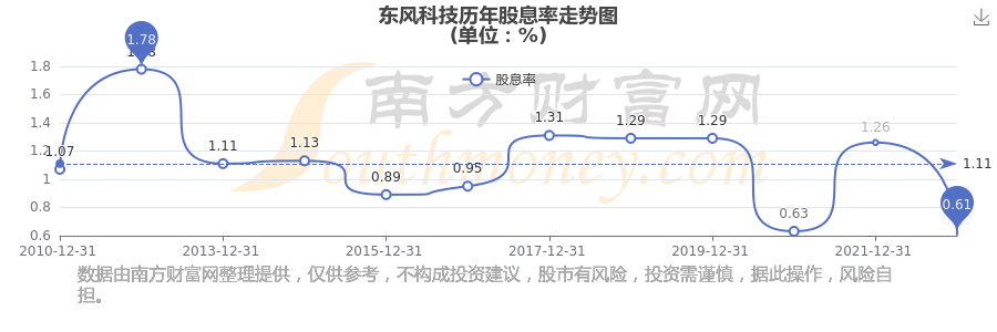 東風(fēng)科技?xì)v年股息率走勢(shì)如下圖:
