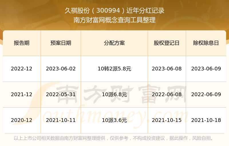 久祺股份300994分紅時(shí)間: