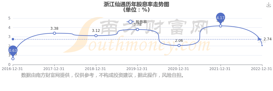 近年浙江仙通年度股息率走勢(shì)如下圖: