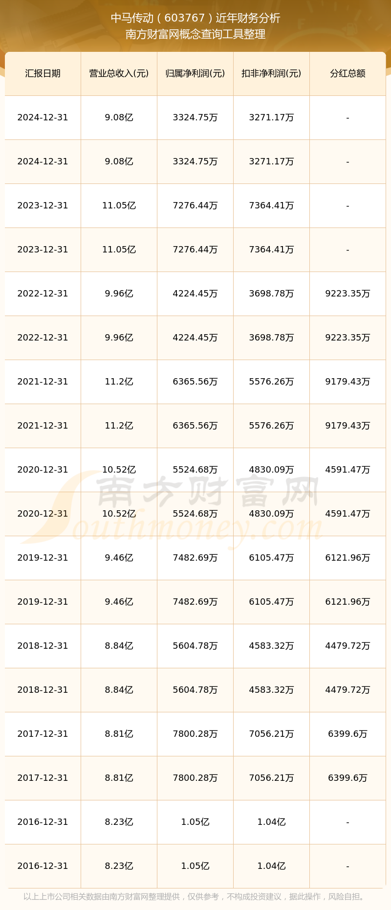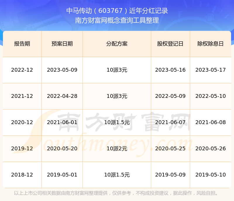 中馬傳動(dòng)歷年分紅派息情況如下表所示: