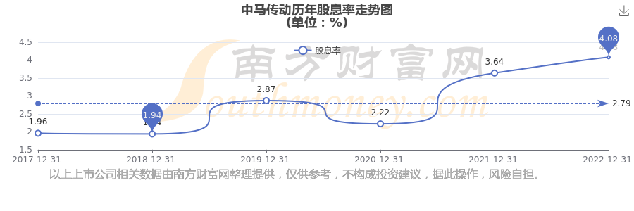 中馬傳動(dòng)歷年股息率走勢(shì)如下圖: