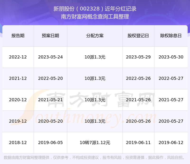 新朋股份最新一次公布的分紅方案:10派1.3元。