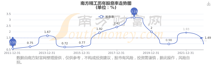 近年南方精工年度股息率走勢如下圖: