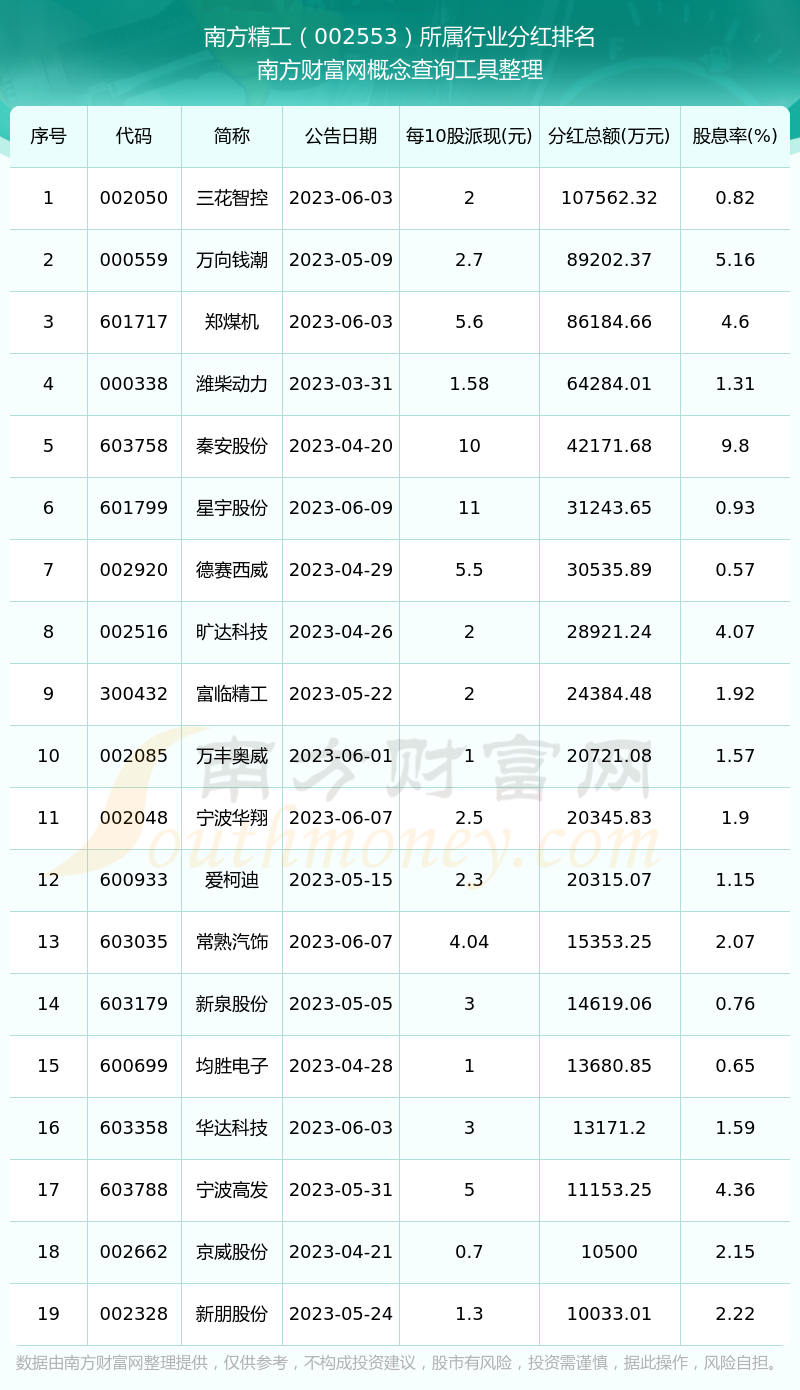 二、南方精工002553行業(yè)分紅排名
