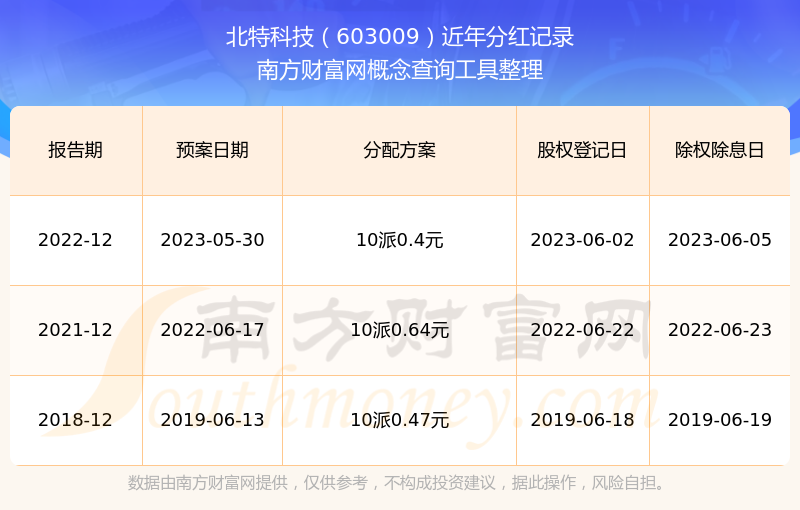 北特科技最新一次公布的分紅方案:10派0.4元。