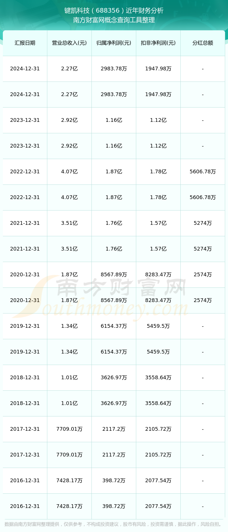 近年鍵凱科技分紅派息情況如下表所示: