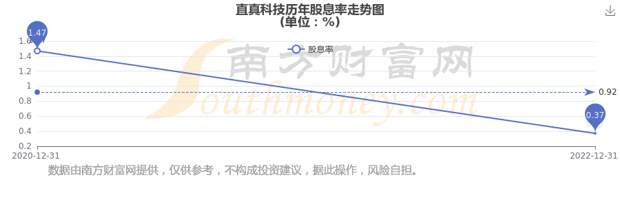 直真科技?xì)v年股息率走勢(shì)如下圖: