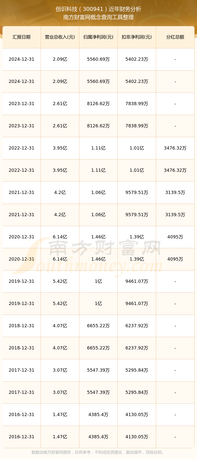 近年創(chuàng)識科技分紅派息情況如下表所示: