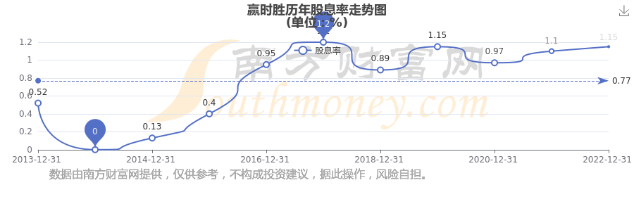 贏時(shí)勝歷年股息率走勢如下圖: