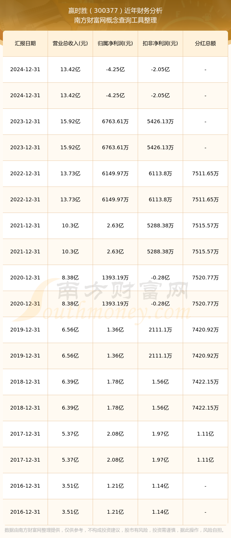 近年贏時(shí)勝分紅派息情況如下表所示: