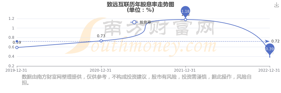 近年致遠互聯(lián)年度股息率走勢如下圖: