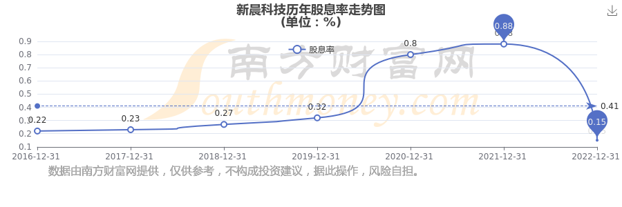 新晨科技?xì)v年股息率走勢(shì)如下圖: