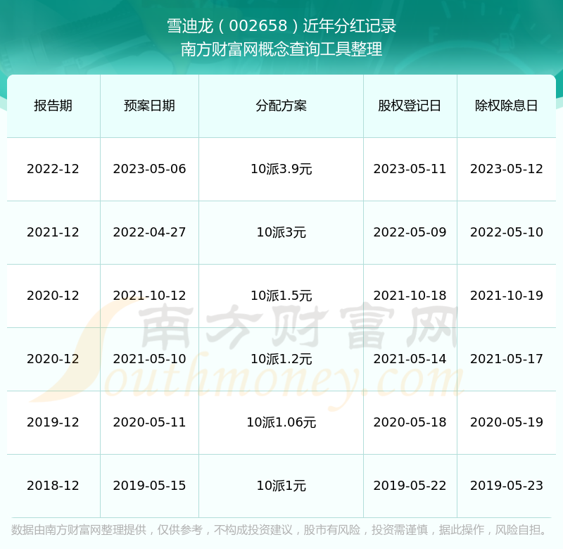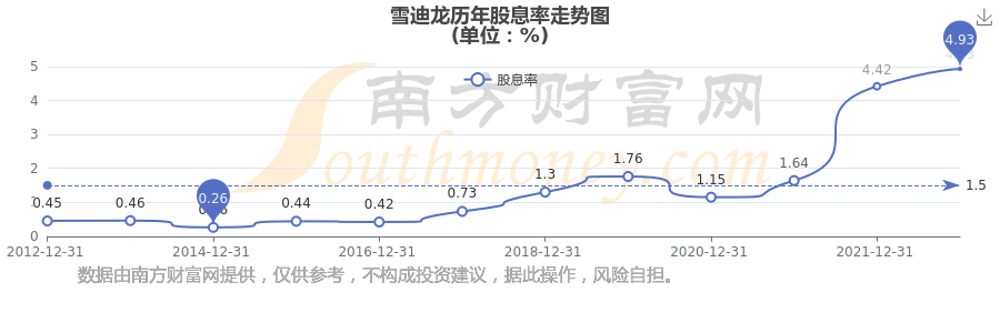 雪迪龍最新一次公布的分紅方案:10派3.9元。