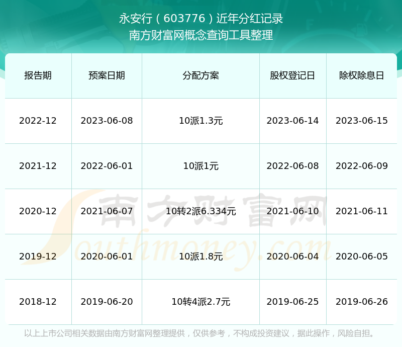 一、永安行(603776)股票分紅記錄