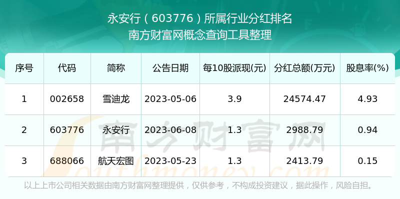 二、永安行603776行業(yè)分紅排名