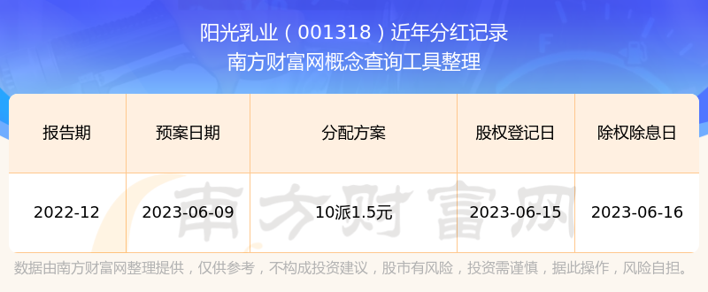 二、陽光乳業(yè)001318行業(yè)分紅排名