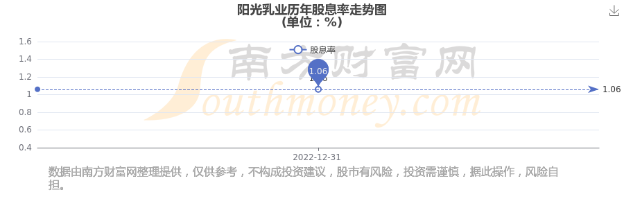 近年陽光乳業(yè)年度股息率走勢如下圖: