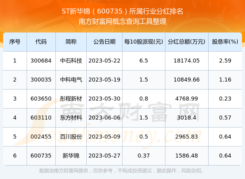二、ST新華錦600735行業(yè)分紅排名