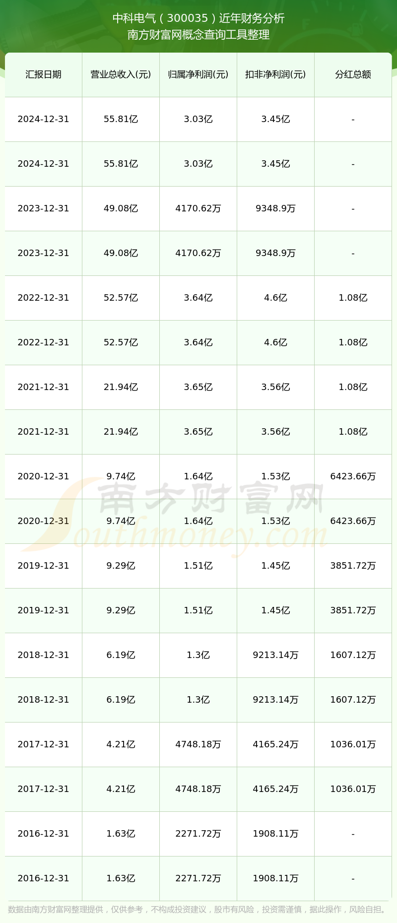 中科電氣2024年總營(yíng)收55.81億,同比增長(zhǎng)13.72%;凈利潤(rùn)3.03億,同比增長(zhǎng)626.57%;銷售毛利率20.87%。