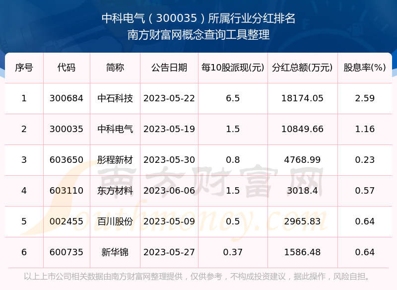 二、中科電氣300035行業(yè)分紅排名