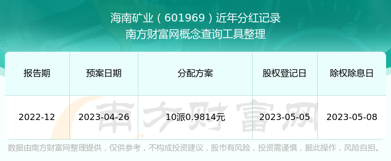 海南礦業(yè)最新一次公布的分紅方案:10派0.9814元。