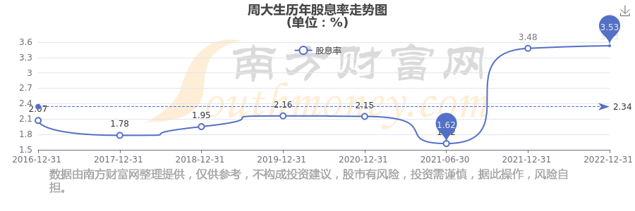 近年周大生年度股息率走勢(shì)如下圖: