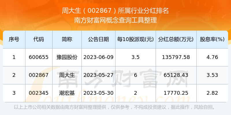 二、周大生002867行業(yè)分紅排名