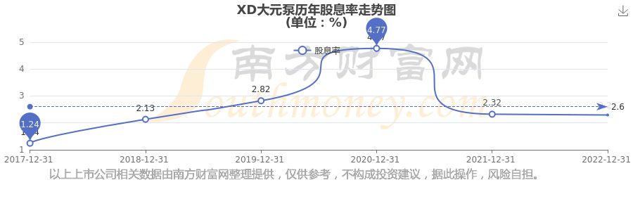 XD大元泵歷年股息率走勢(shì)如下圖: