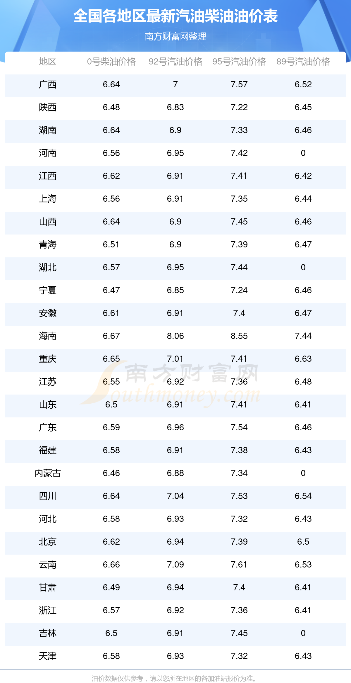 2025年11月17日全國(guó)油價(jià)調(diào)整及最新汽油價(jià)格表